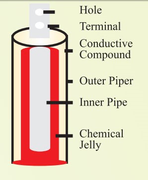 (Outer pipe made by copper and electrode will filled with a specially developed crystalline, hygroscopic gel.)