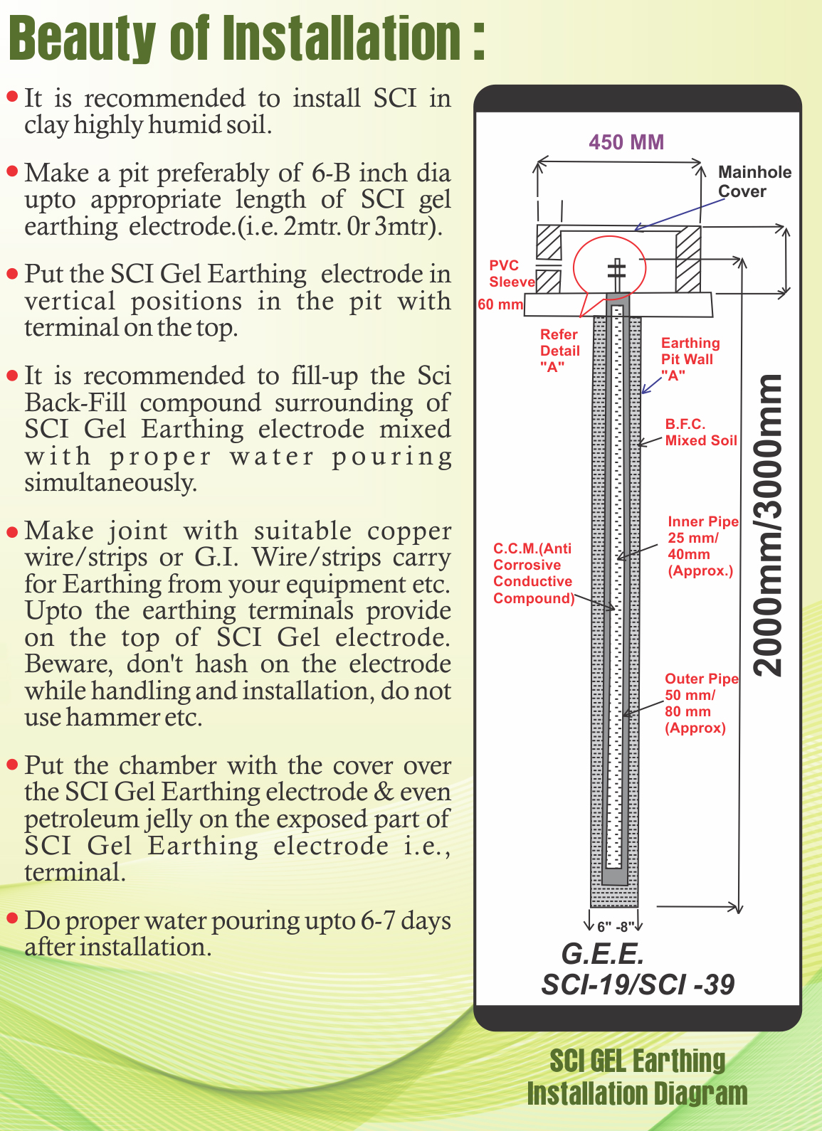 A good and continuous effective earthing is of paramount importance. Sci Gel Earthing Electrode is most effective product for earthing.